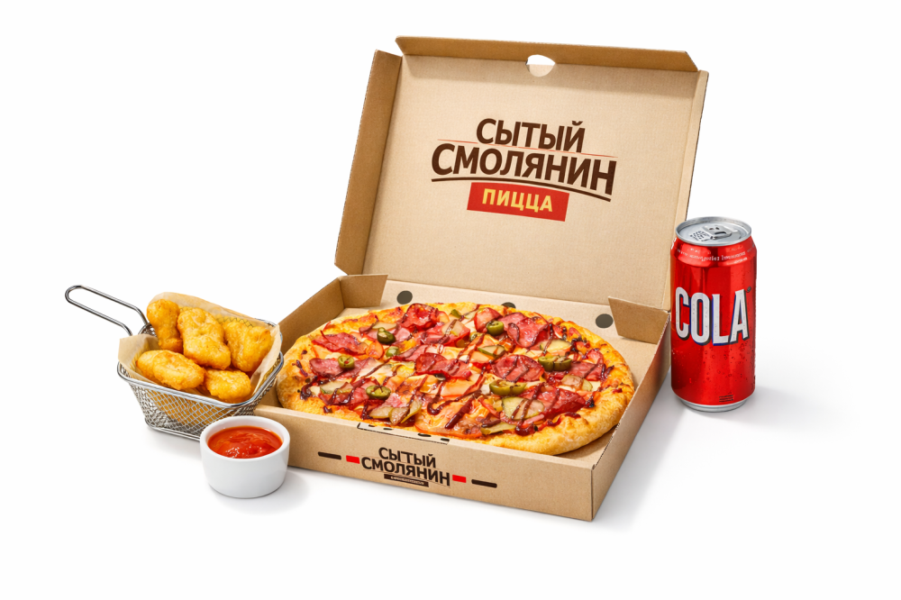 Средняя пицца (30 см) на выбор + горячая закуска на выбор + напиток на выбор + соус на выбор