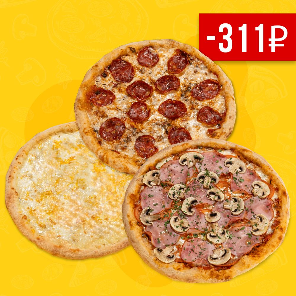 Новое комбо, три наши самые популярные пиццы 25 см! Рони (25 см) + Сырная (25 см) + Ветчина и сыр (25 см)